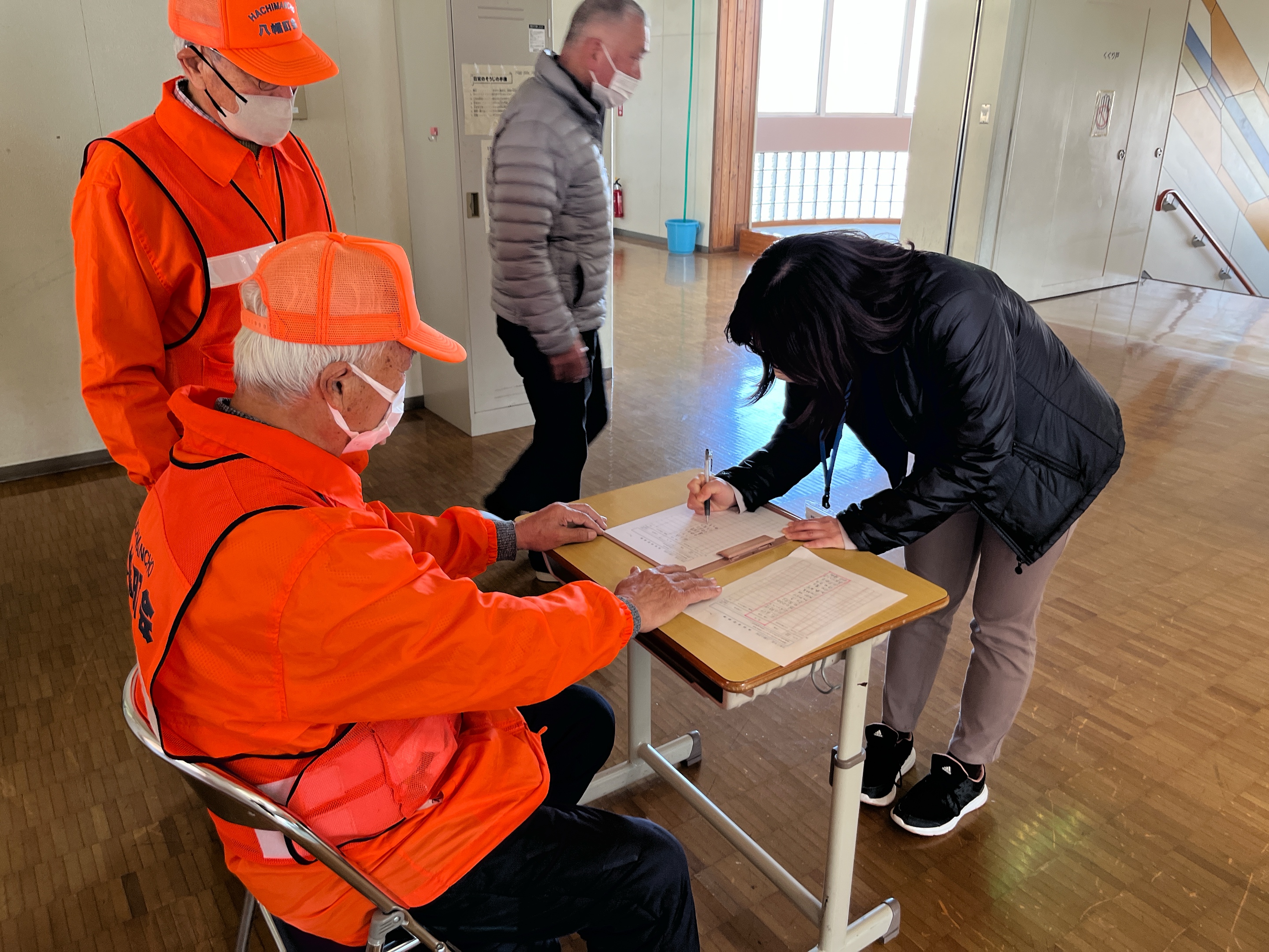 避難の際には受付をします。